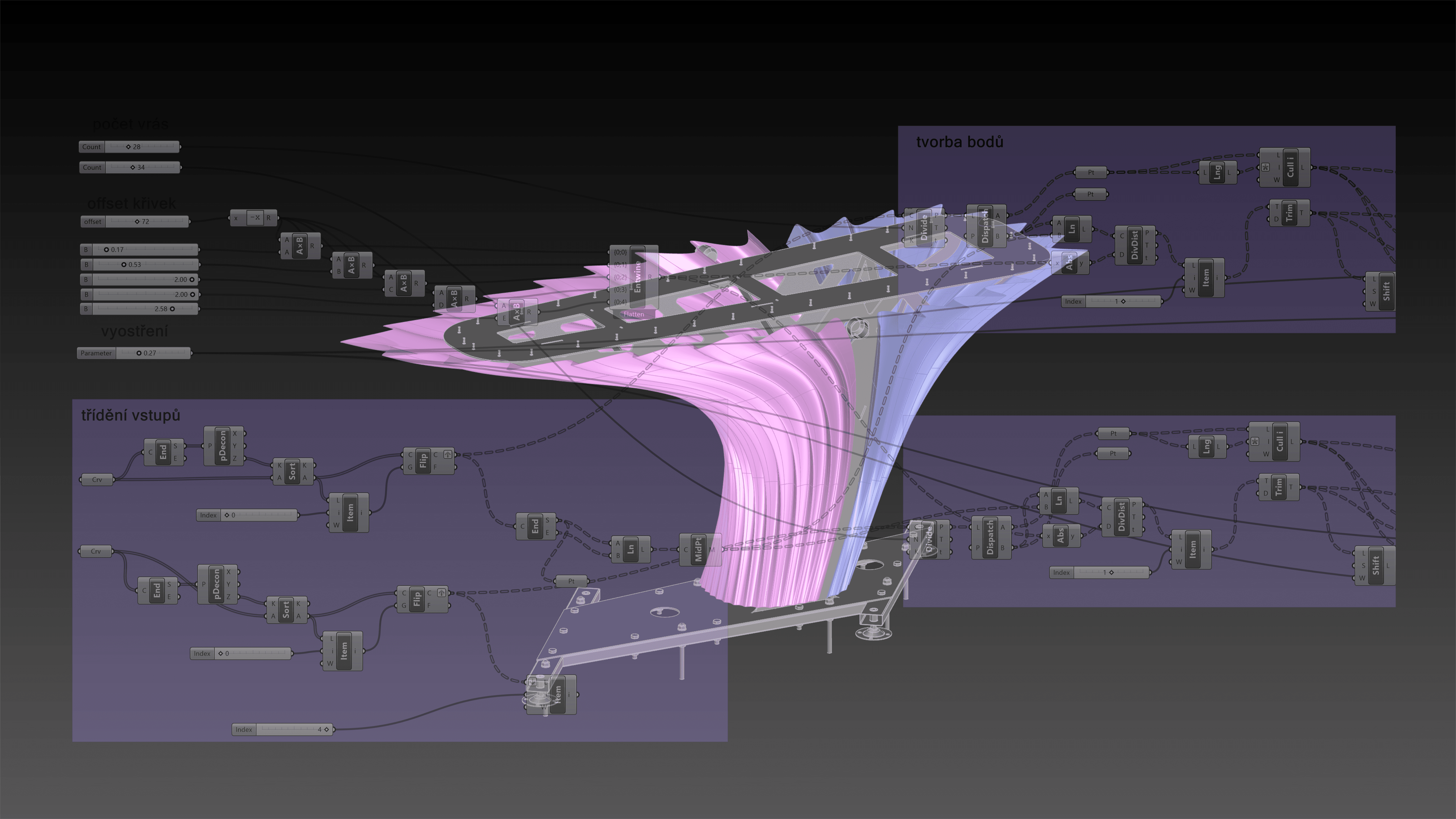 This project details the design and digital modeling of interior elements commissioned for the new Škoda offices in Prague. The work was developed in collaboration with Pavel Kříž and Jaroslav Baron. It focuses on exploiting the creative freedom and structural potential offered by LFAM (Large Format Additive Manufacturing). More technical details about the manufacturing process can be found in Jaroslav Baron's lecture in the link below.