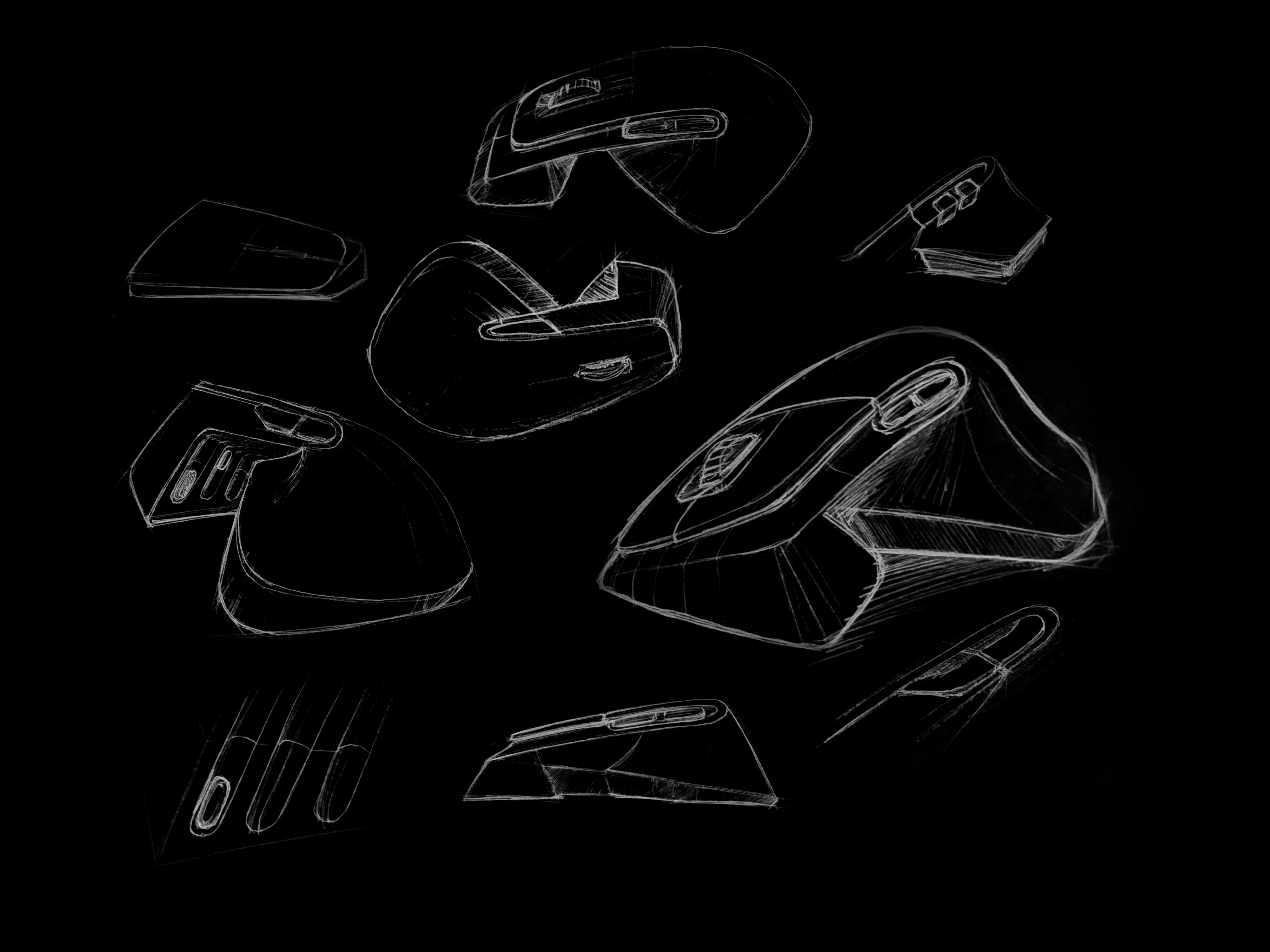 Driven by initial ergonomic research, I used sketches and clay modeling to define the core gesture. I then transitioned to 3D to rigorously refine the volumes and ensure perfect surface continuity. The resulting semi-vertical form promotes a neutral 'handshake' position. Key features include a distinct floating button section and a ribbed thumb rest, balancing smooth geometry with a tactile structural anchor.
