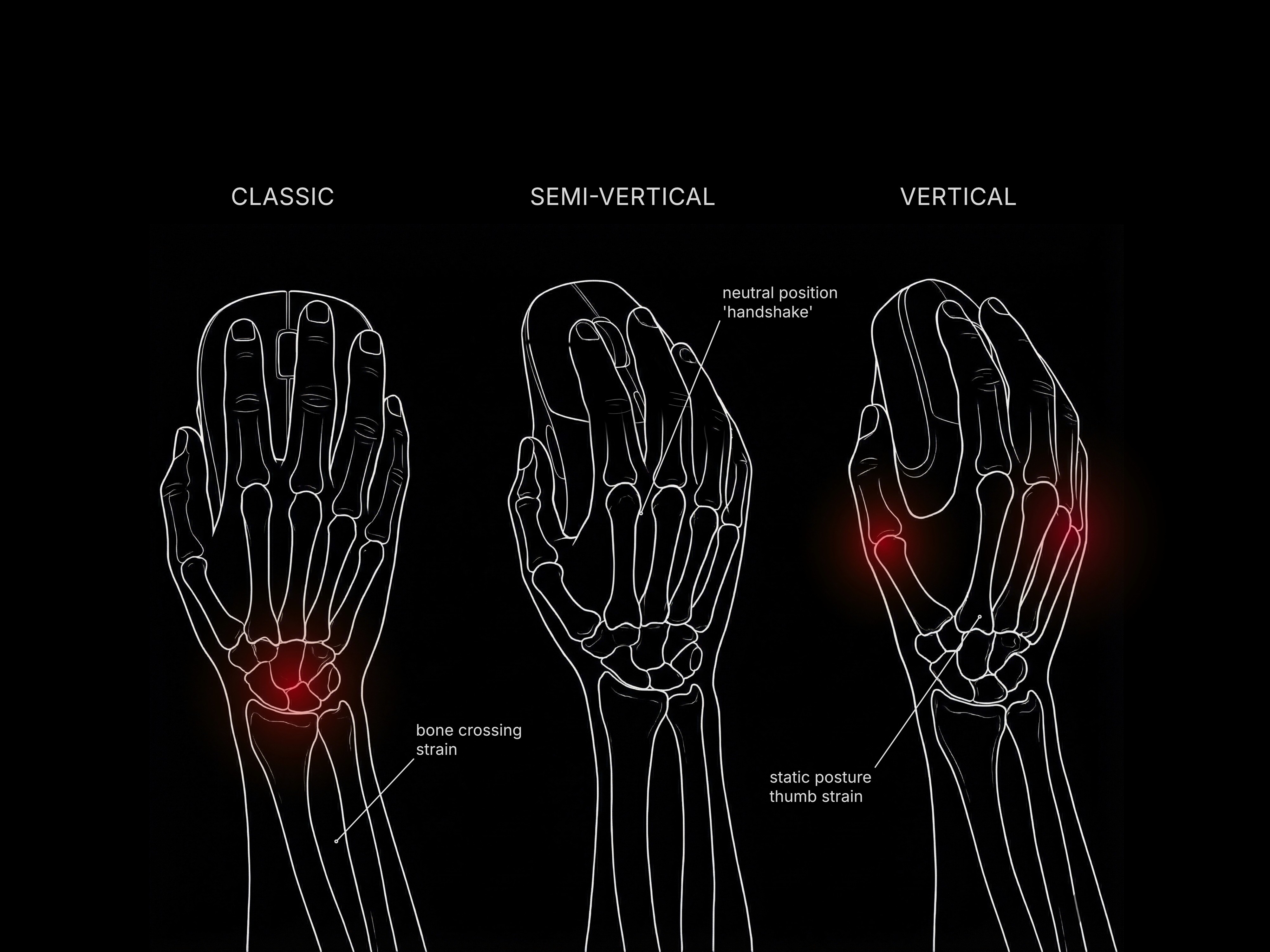 In 2015, the options were usually split between standard flat mice and fully vertical ergonomic tools. I aimed to strike a balance between the two. The challenge was to sculpt a semi-vertical form that feels natural to the hand and relieves wrist tension, while keeping the precision we all rely on. My goal was simply to design a clean, comfortable companion for the modern workspace.